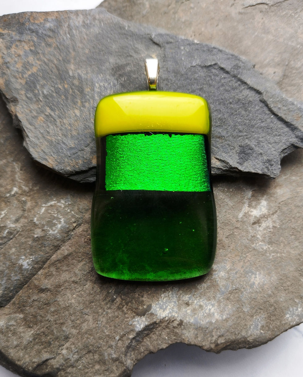 I use a range of different types of high-quality Bullseye Glass, manufactured in Portland, Oregon (USA), made specifically for art and architectural purposes. I combine dichroic, transparent and opalescent glass, frit, powders and stringers to make unique fused glass jewellery and decorative pieces. Pendant bails, hooks and studs are all sterling silver.